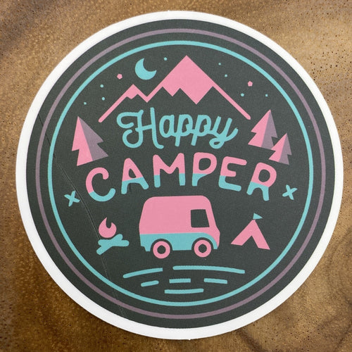 Round Happy Camper Sticker